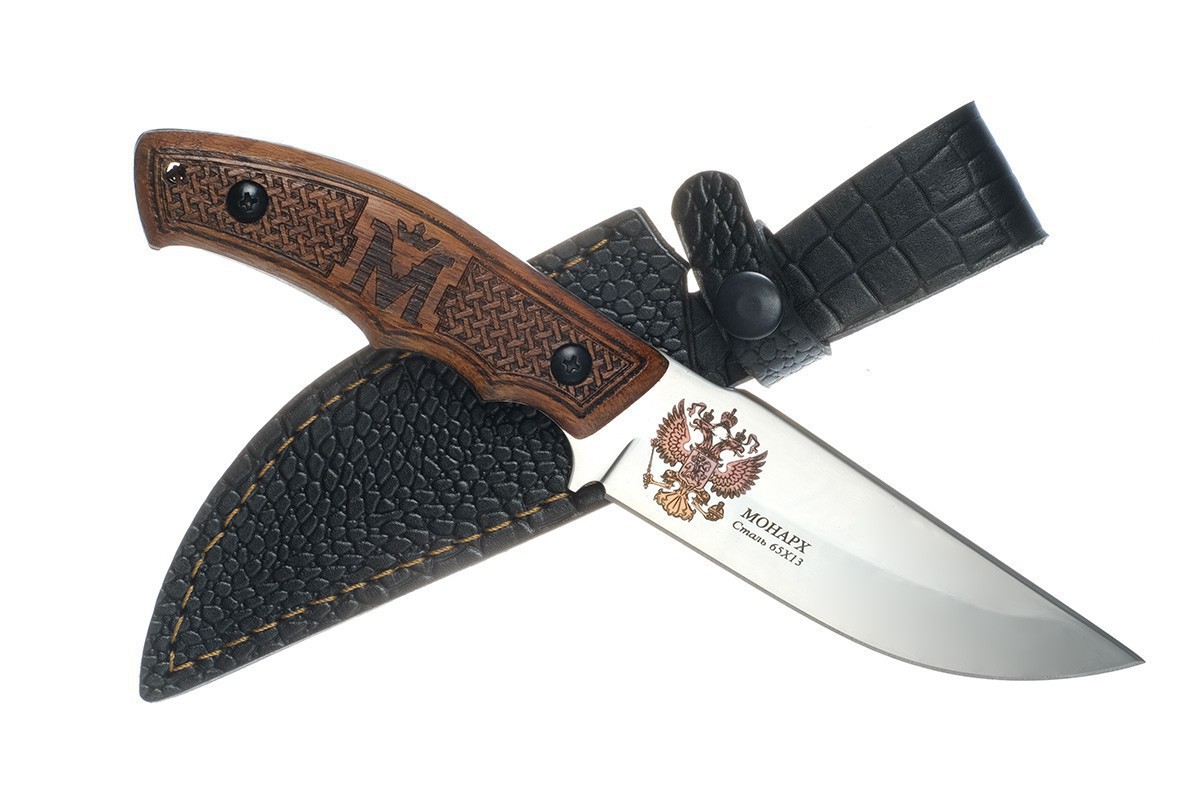 Нож Монарх (сталь 65Х13), ц.м., орех, резьба