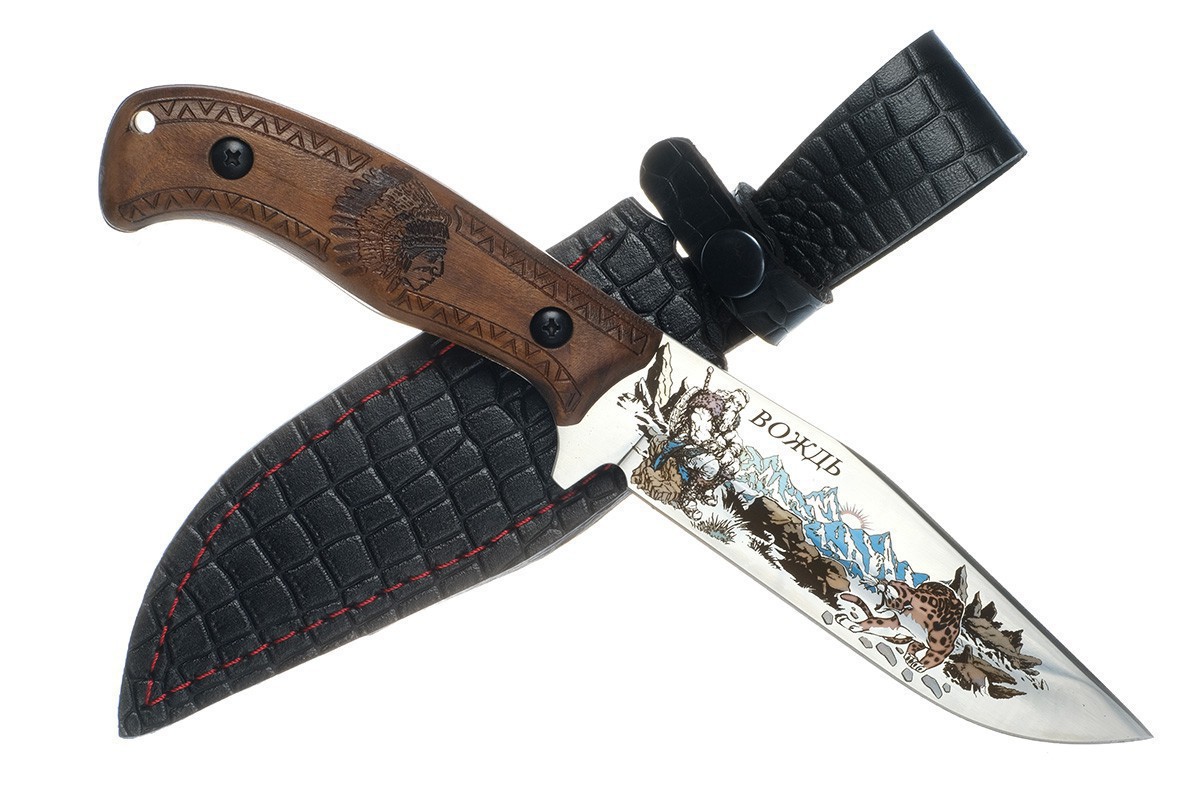 Нож Вождь (сталь 65Х13), ц.м., орех, резьба