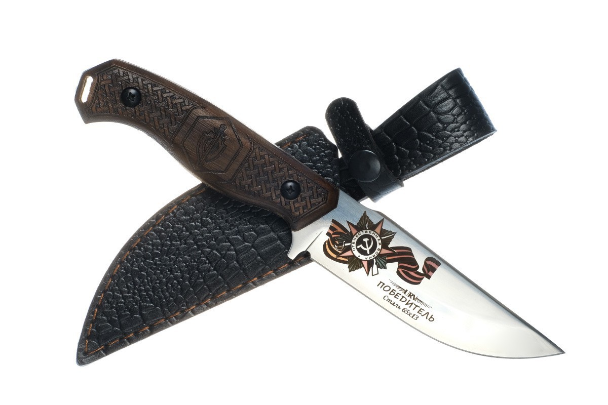 Нож Победитель (сталь 65Х13), ц.м., орех, резьба