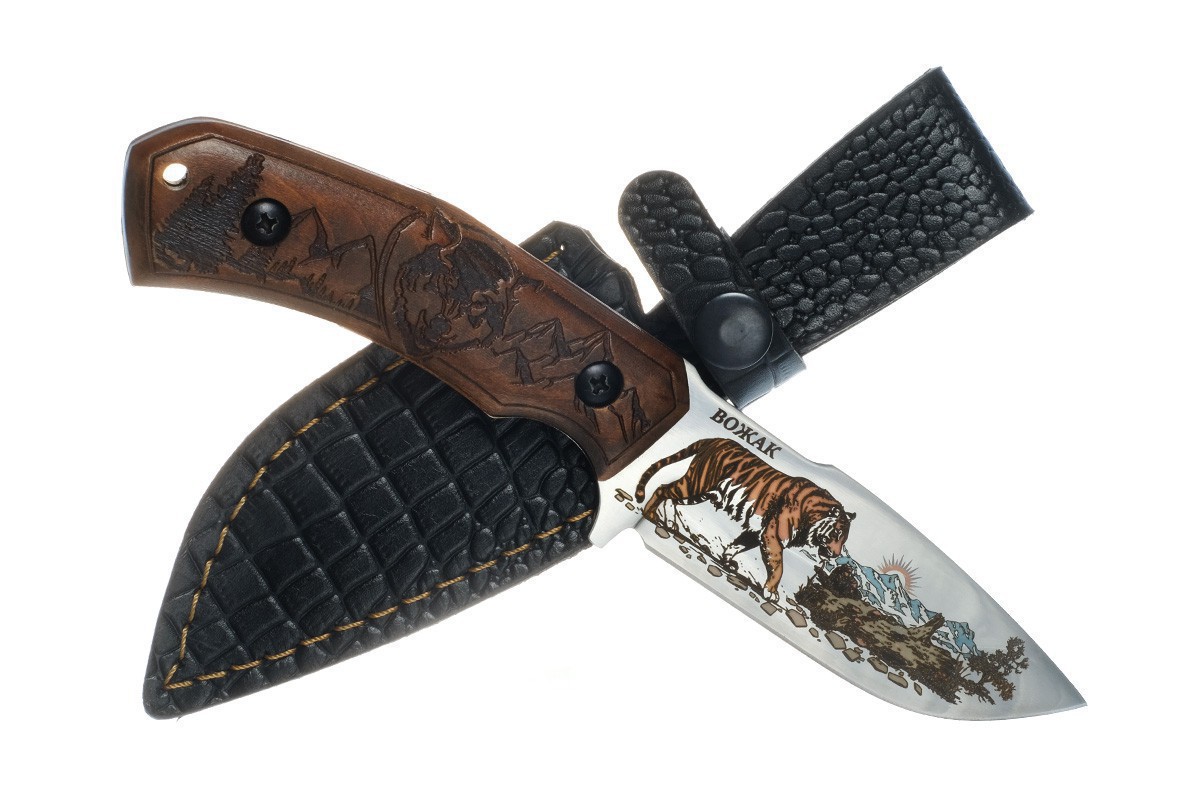Нож Вожак (сталь 65Х13), ц.м., орех, резьба