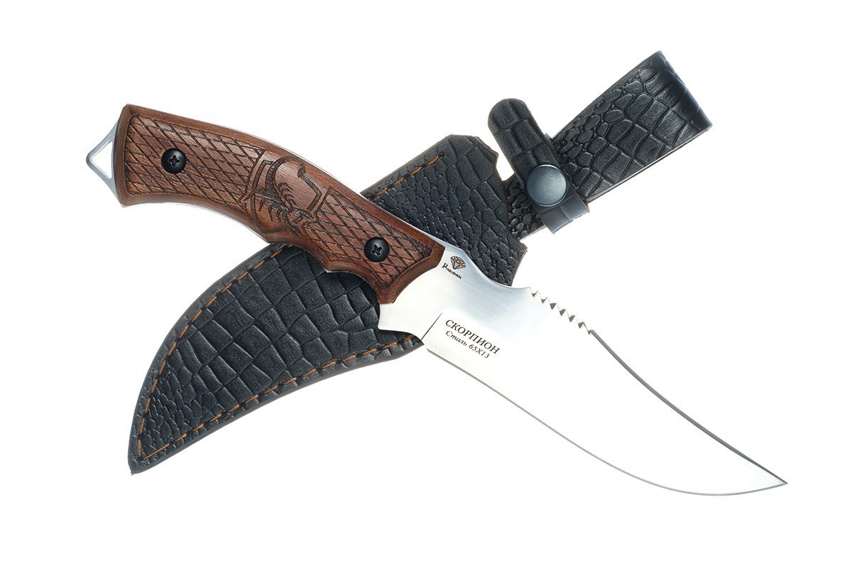 Нож Скорпион (сталь 65Х13), ц.м., орех, резьба