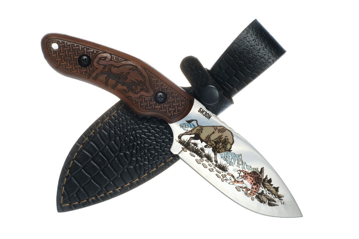 Нож Бизон (сталь 65Х13), ц.м., орех, резьба