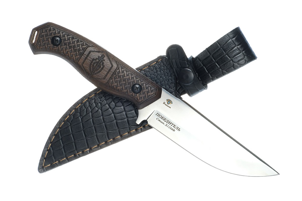 Нож Победитель (сталь Х12МФ), ц.м., орех, резьба