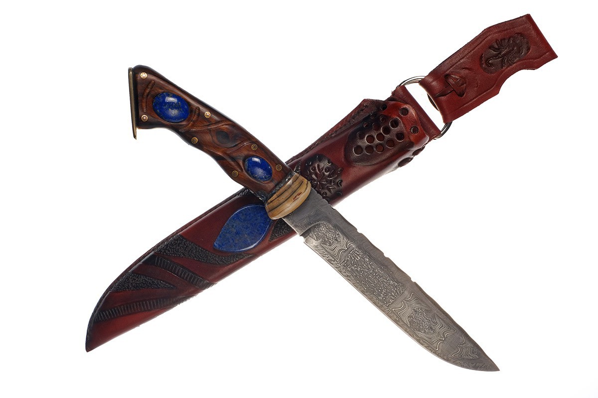 Описание рукояти: Мокуме, стаб. мамонт, морж, перламутр, аризонское железное дерево, лазурит