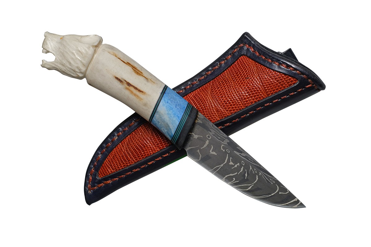 Нож "Медведь" (мозаичный дамаск), А. Корзун, рог лося