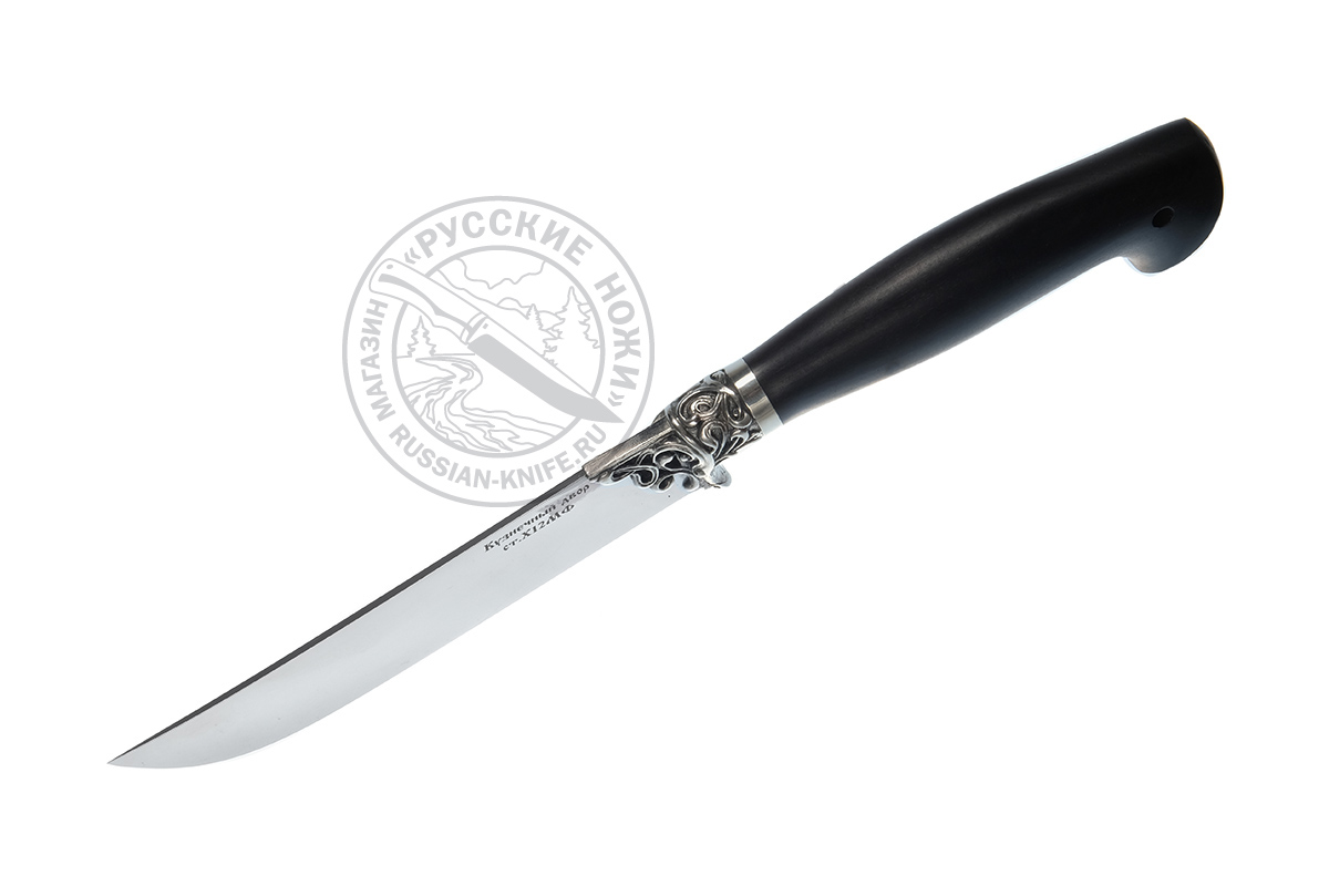 - Нож "Узбек" (сталь Х12МФ), рукоять - граб, мельхиор, Крутов В.
