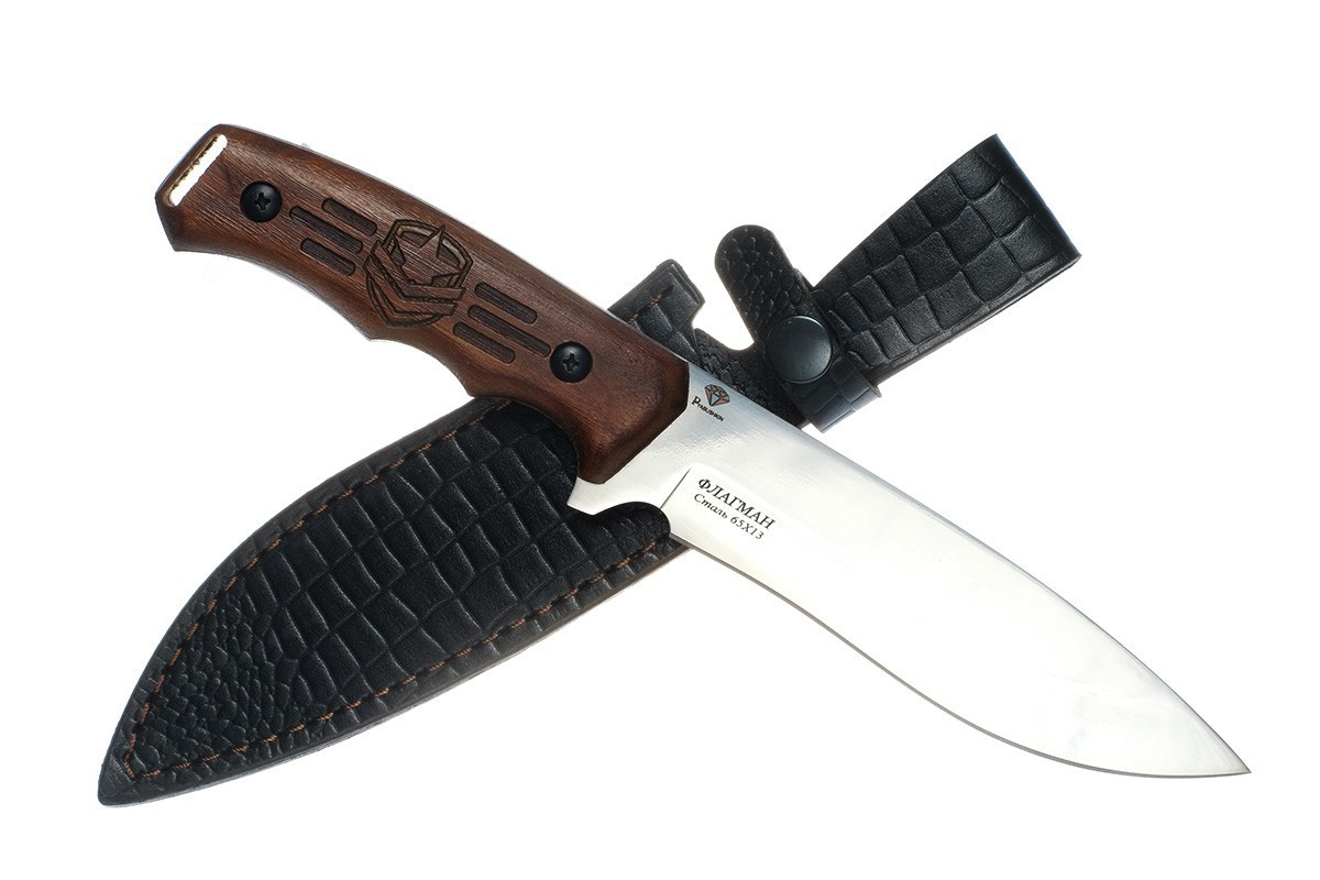 Нож Флагман (сталь 65Х13), ц.м., орех, резьба