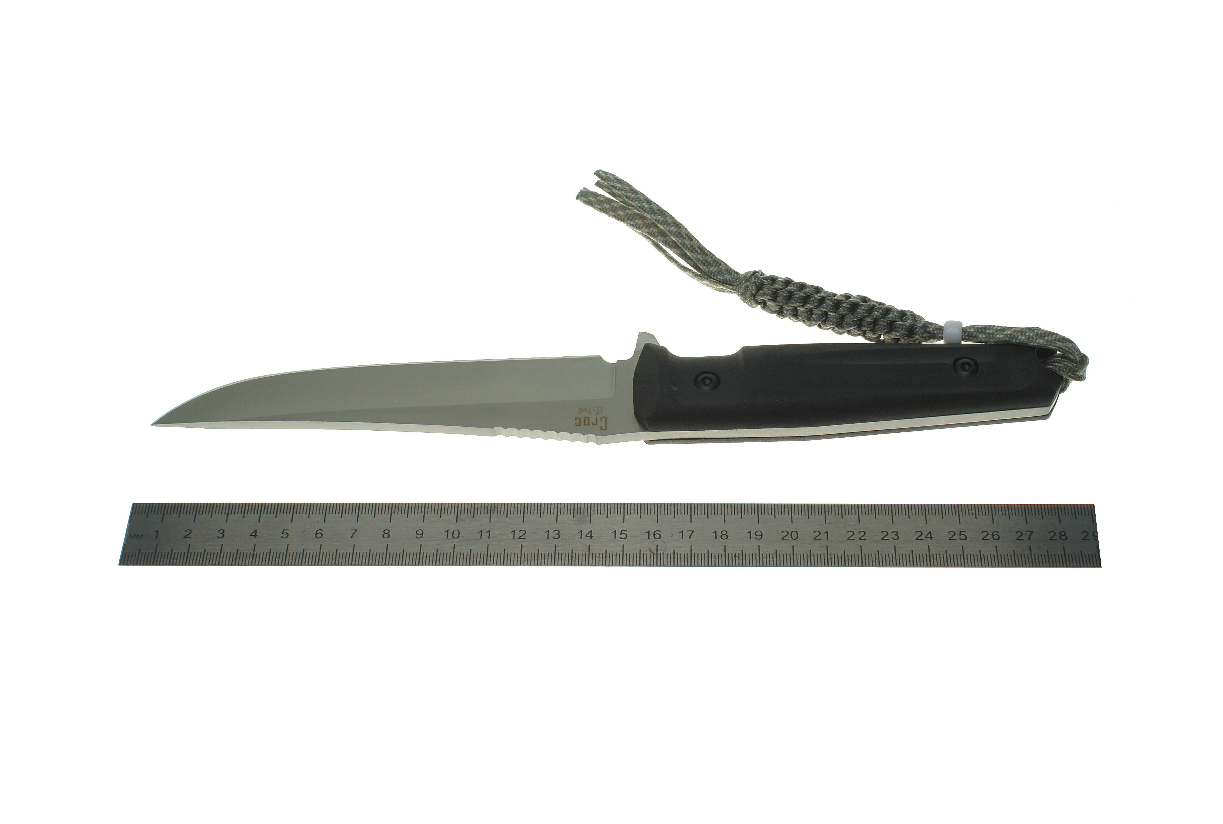 Крокодильчик Croc с рукоятью из Kraton, клинком из одной из самых модных сталей - D2, а также MOLLE-совместимым многофункциональным чехлом,