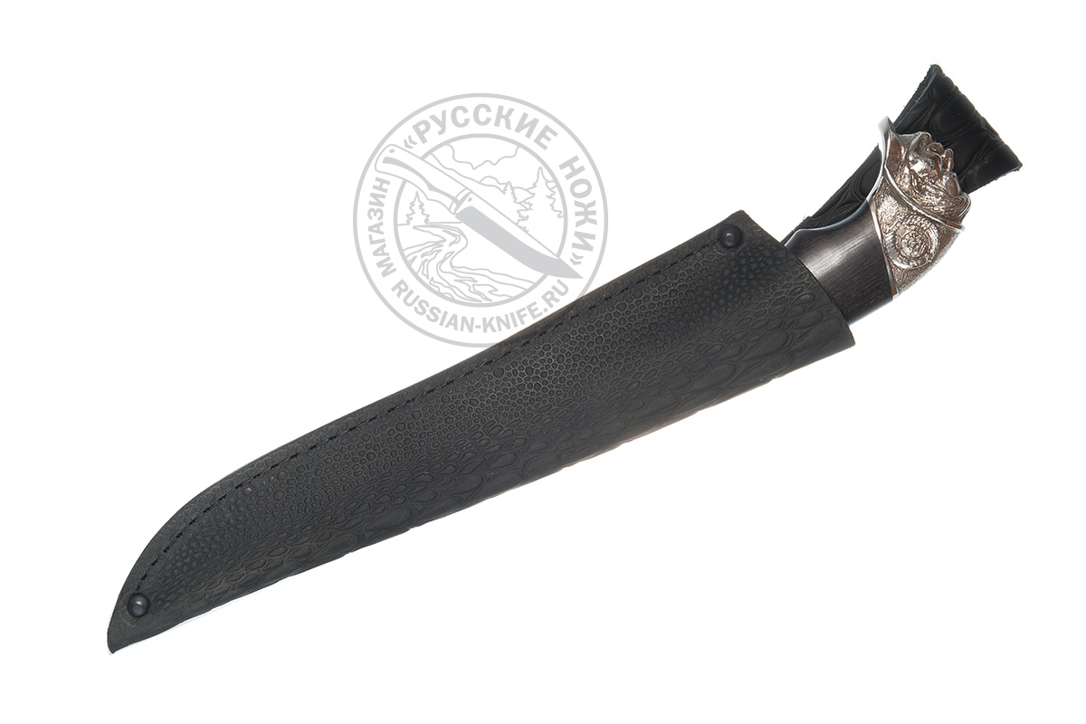 нож Осётр, (дамасская сталь), рукоять граб, литье мельхиор